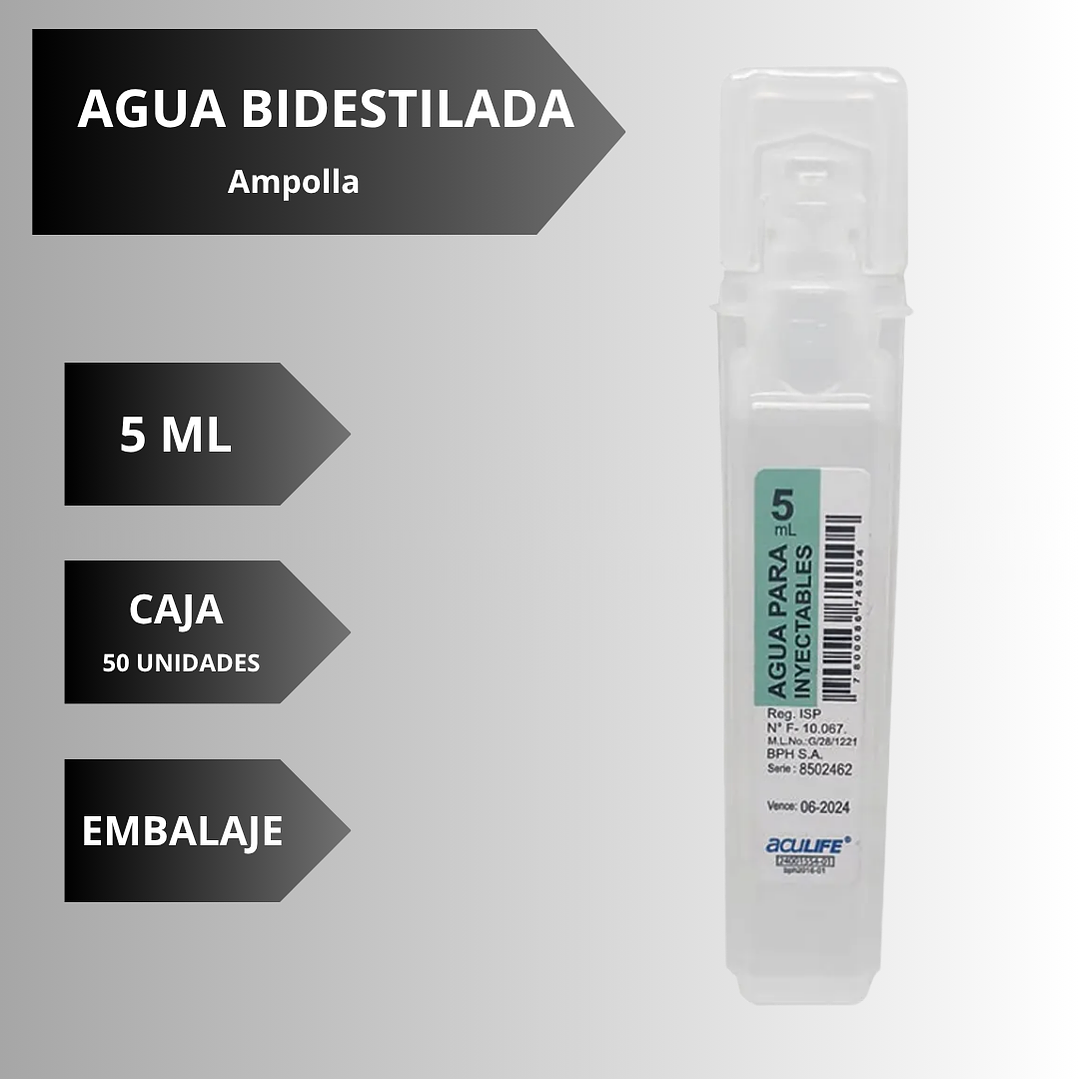 AGUA BIDESTILADA 5 ML AMPOLLA (ACU LIFE), CAJA 50u